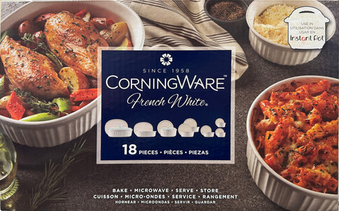 Embolden your cooking with this 18-piece classic, fluted set of French White Cookware from CorningWare.